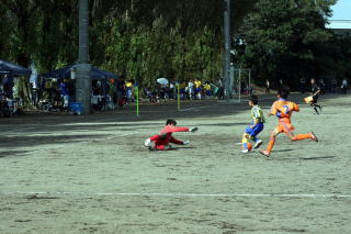 後半1点を失うものの、MF山井がゴール前でGKをかわしで3点目、その後もFW伏見が4点目を決め、4-2で勝利! |