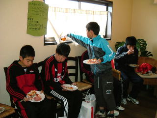 しかし、想い出に残るイベントが全く無いままではと考え、急遽、スタッフ・u12保護者・u12選手だけで、メインの石釜ピザを食べながら「送る会」をして上げられました。