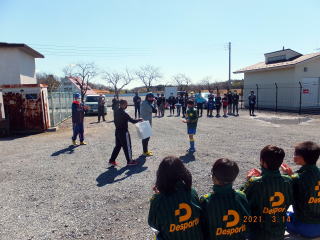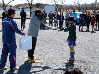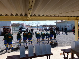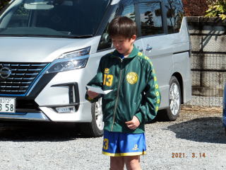 通常であれば、バイキング料理を食べながらの「送る会」になる予定でしたが、昨年に引続き「新型コロナウイルス感染」の影響から「3密」を避けなければならず、2年連続での野外での「卒団式」となってしまいました。 |